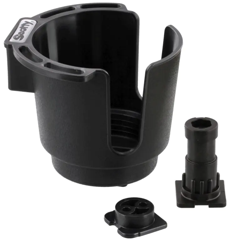- Cup holder with button mount and rod holder post mount